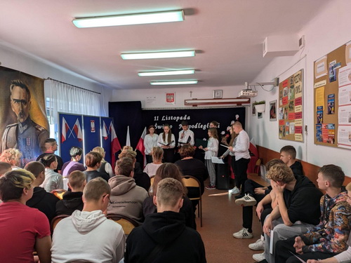 6 listopada uczniowie Branżowej Szkoły I stopnia w Żarnowie wżęli udział w uroczystej akademii z okazji Narodowego Święta Niepodległości. Był to poruszający i pełen refleksji moment wspólnego uczczenia 106. rocznicy odzyskania przez Polskę niepodległości. Podczas akademii przypomniano najważniejsze wydarzenia i postaci, dzięki którym po 123 latach zaborów Polska ponownie pojawiła się na mapie Europy. Uczniowie z dużym zaangażowaniem przedstawili program artystyczny, uczący poezji, historii i muzyki, wprowadzając wszystkich w atmosferę zadumy i patriotycznej dumy. W swoim przemówieniu dyrektor szkoły, pani Bożena Kołtunowska, podkreśliła wagę pamięci o przeszłości oraz znaczenie wolności, o którą walczyły całe pokolenia Polaków. Nawiązała również do wydarzeń historycznych sprzed lat, które ukształtowały naszą ojczyznę. Pani Dyrektor zaprosiła uczniów do udziału w powiatowych i gminnych obchodach Narodowego Święta Niepodległości, zachęcając do pielęgnowania tradycji i postawy patriotycznej. Była to piękna lekcja historii, patriotyzmu i wspólnoty, która na długo pozostanie w naszej pamięci.