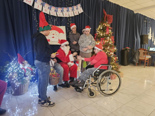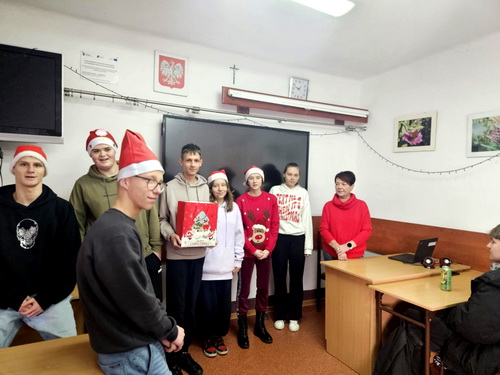 Spotkanie było pełne emocji, uśmiechu i ciepłych gestów, które na długo pozostaną w pamięci zarówno uczniów, jak i gospodarzy. Podczas wizyty nie zabrakło świątecznych wypieków, które przygotowywali młodzi kucharze – zapach pieczonych ciast i pierników szybko wypełnił całą salę, tworząc wyjątkową, rodzinną atmosferę. Uczniowie zadbali również o część artystyczną i taneczną, prezentując krótkie występy, które zostały nagrodzone gromkimi brawami. Wspólne śpiewanie połączyło wszystkich uczestników, a dźwięk znanych melodii dodatkowo podkreślił magię nadchodzących Świąt. W czasie spotkania pojawił się także święty Mikołaj, który obdarował podopiecznych ośrodka drobnymi prezentami. Każdy upominek wywoływał szczery uśmiech, a radość osób przebywających w Środowiskowym Domu Samopomocy była najlepszym dowodem na to, jak ważne są takie gesty życzliwości. Całe wydarzenie przebiegło w serdecznej atmosferze i pokazało, jak wiele znaczą inicjatywy integrujące młodzież ze społecznością lokalną. Wizyta w Dąbrówce była nie tylko okazją do wspólnego świętowania, ale również lekcją empatii, otwartości i budowania relacji międzyludzkich. Uczniowie wrócili pełni pozytywnych emocji, a gospodarze z wdzięcznością żegnali ich ciepłymi słowami.
