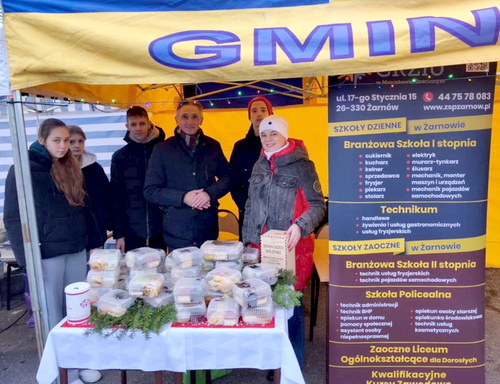 W sobotę 29 listopada na placu targowym w Żarnowie odbył się Charytatywny Jarmark Świąteczny dla Milenki Świąder, dziewczynki chorej na serduszko, zorganizowany z inicjatywy Teamu „Serduszko Milenki”. Od godziny 12.00 do 20.00 można było korzystać z licznych atrakcji – świątecznych stoisk, loterii fantowych, występów artystycznych oraz spotkań ze Świętym Mikołajem. W powietrzu unosił się zapach wypieków i świątecznych aromatów, a całości dopełniały rozmowy, muzyka i ogrom dobrej energii. Najważniejszy jednak był cel: wsparcie leczenia małej Milenki. W wydarzeniu uczestniczyliśmy również my: uczniowie, nauczyciele i pracownicy Branżowej Szkoły I stopnia w Żarnowie wraz z panią dyrektor Bożeną Kołtunowską. Cała społeczność szkolna zaangażowała się w przygotowanie pysznych ciast, które cieszyły się dużym zainteresowaniem. Jarmark po raz kolejny pokazał, jak wielką moc ma wspólne działanie. Mieszkańcy udowodnili, że potrafią jednoczyć się w imię dobra. Dzięki ich wsparciu to wydarzenie stało się pięknym świętem solidarności, nadziei i serca dla Milenki.
